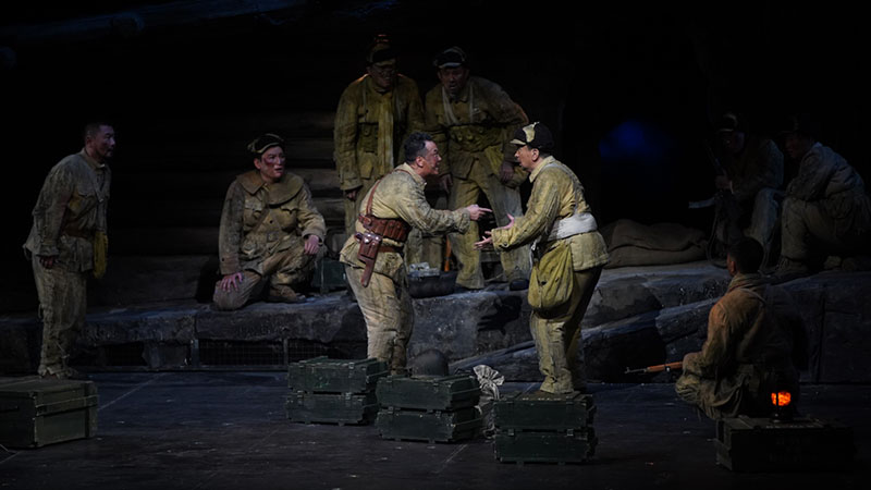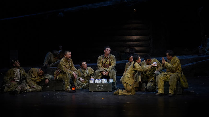 为了不断打磨这部红色IP力作,《上甘岭》剧组在近一年的巡演之路上,每天保持着演员训练。导演李任几乎全程跟组,收集每一地、每一场观众的反馈,边巡演、边修改、边打磨、边再次接受观众的评判。可以说《上甘岭》是难得的一部服务观众、通过市场检验的主旋律舞台剧。经过长时间修改,“七一”档登陆国家大剧院的《上甘岭》2.0版在艺术上已趋于成熟,全剧剧情更加紧凑、舞美特效灯光等的配合日臻默契、演员的“战斗意志”昂扬,这次演出必将为观众带来难得的艺术享受。