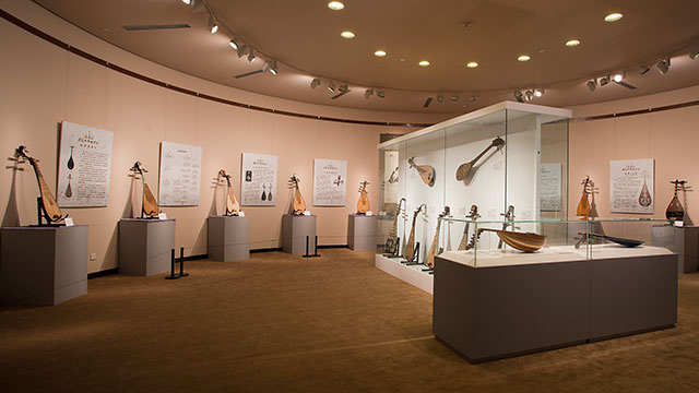 本次展览集中展示了琵琶演奏家方锦龙先生收藏的三十余件不同国家、形制、材质的琵琶乐器,如阿拉伯的乌德、日本的萨摩琵琶、中国的梨形曲项琵琶、五弦琵琶、紫檀螺钿仿唐琵琶、漆器五弦琵琶等。希望观众朋友们能够通过本次展览,了解琵琶的前世与今生,漫谈琵琶史话,领略民乐之美。