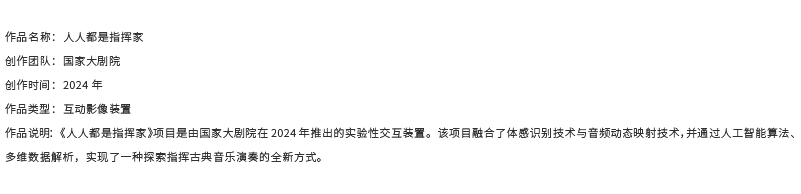 艺术与数字技术如同一对交织共生的伴侣,共同孕育出璀璨夺目的繁花。表演艺术与数字技术的有机结合将使观众能够更加直观地感受到艺术与现实世界的交互,体验到虚拟与现实无缝融合的奇妙。数字交互体验和AIGC算法的升级,将使艺术作品更加智能化和个性化,观众可以深度参与并且表达自己的喜好和情感,与艺术作品进行互动,甚至参与独一无二的艺术创作过程。