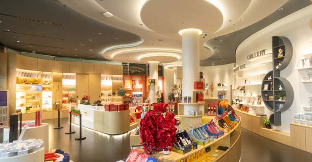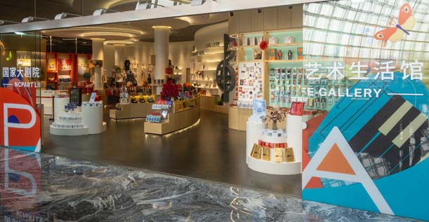 艺术精品长廊位于国家大剧院一层公共大厅东侧,南北贯穿音乐厅一层外侧。作为国家大剧院文化创意产业的重要组成部分,艺术精品长廊包括国家大剧院艺术生活馆、国家大剧院文房四宝苑、国家大剧院音响馆、国家大剧院音像店等。