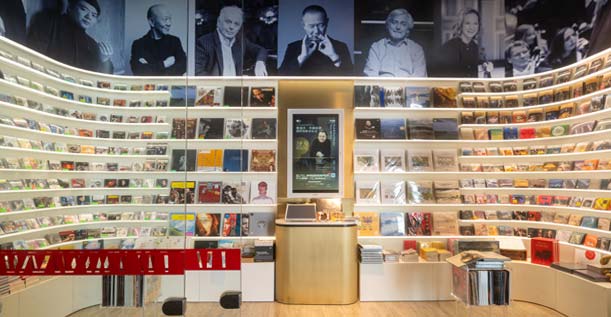 音像店位于大剧院一层公共大厅东侧。明亮的店面,经典的唱片,会带给您不同凡响的艺术体验。独具匠心的设计风格,别具一格的艺术氛围,伴您在艺术的海洋里徜徉,在美妙的乐曲中陶醉。