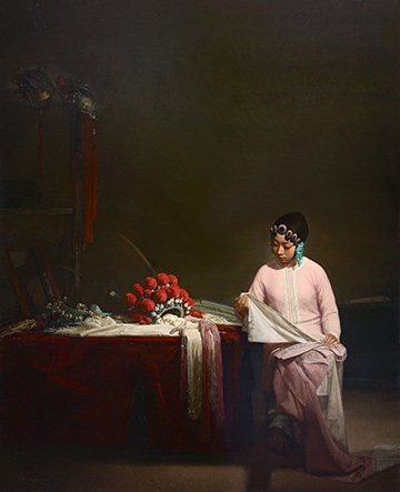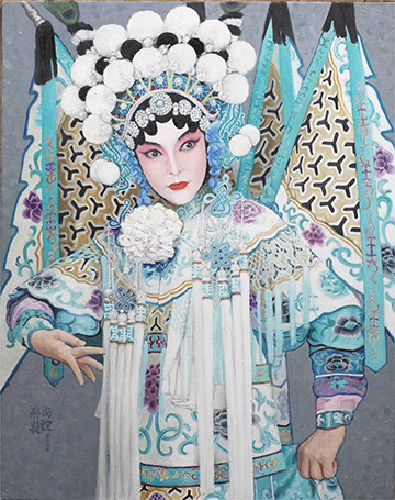 作为外来的造型语言,油画与中国绘画优秀传统的结合始终是油画家致力研究的课题。在某种程度上,戏曲题材的油画创作就是这个课题的重要实践方式,在写实性与写意性之间,在三维立体的造型和平面装饰的手法之间,油画家展开多方面研究,突出地在作品中彰显出传统艺术、民族艺术之美。例如著名油画家靳尚谊先生,就在他深厚的油画造型功力基础上融合中国艺术的写意语言,以一大批戏曲人物作品开拓出崭新的审美意境,为中国油画体现中国文化精神作出了重大贡献。展览中各位油画名家的作品或明暗强烈、光影微妙,人物如同从舞台的帷幕深处显现出来;或色彩斑斓、线条细腻,传达出中国戏曲的形式特征;或用笔豪放、肌理斑驳,让人在表现性的油画语言中如闻舞台的铿锵声响。而无论何种风格何种笔调,油画家所营造的,正是中西艺术融合、古今创造融通的创新之境。