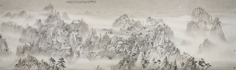 牛朝 《皓月万山辉》 纸本水墨 纵106厘米 横357厘米 2022年
