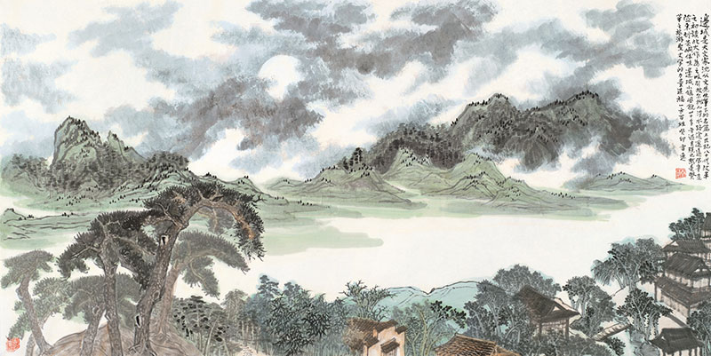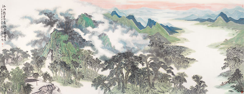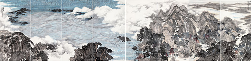 听涛山岳图 纸本设色 248×1032cm 2015年