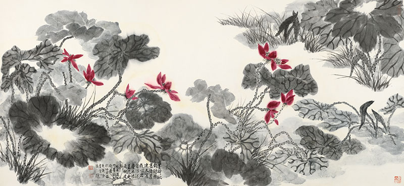墨荷秋韵 纸本设色 115×248cm 2019年
