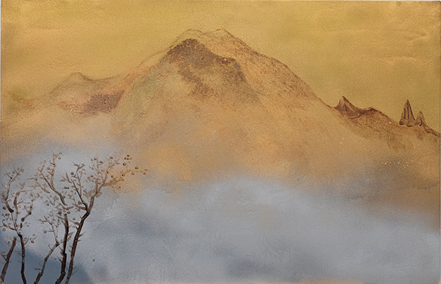 夕阳的九华佛光 漆画 60x80cm 2024年