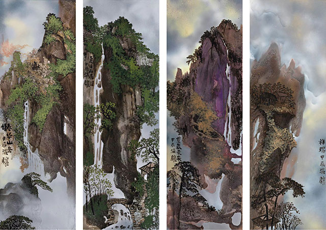 画家温骧1953年生于书香世家,自幼喜爱书画,在其艺术道路的发展历程中,他既持之以恒地学习中国画,又对工艺美术领域进行探索研习,学艺背景极为丰富且转益多师。在中国画领域他博采众长,青年时期于故宫临摹古画的经历为他积累了丰富的临摹经验,加深了对传统中国画的理解;80年代以来跟随当代山水画名家近距离学习的过程,使其进一步在山水画领域集古纳今。此外,他还负笈东渡,结识东山魁夷、平山郁夫、加山又造等日本著名画家,东瀛漆画的制作工艺和日式绘画的装饰风格为他的漆画与中国画创作带来了启发。丰富的人生经历以及对艺术的执着追求,使温骧的作品面貌集众家之所长,而对中国传统文化多年的见习与体悟促使他将对自然的凝思转化为内在心性的独特体验,从而落笔于对文人气韵的抒发。
