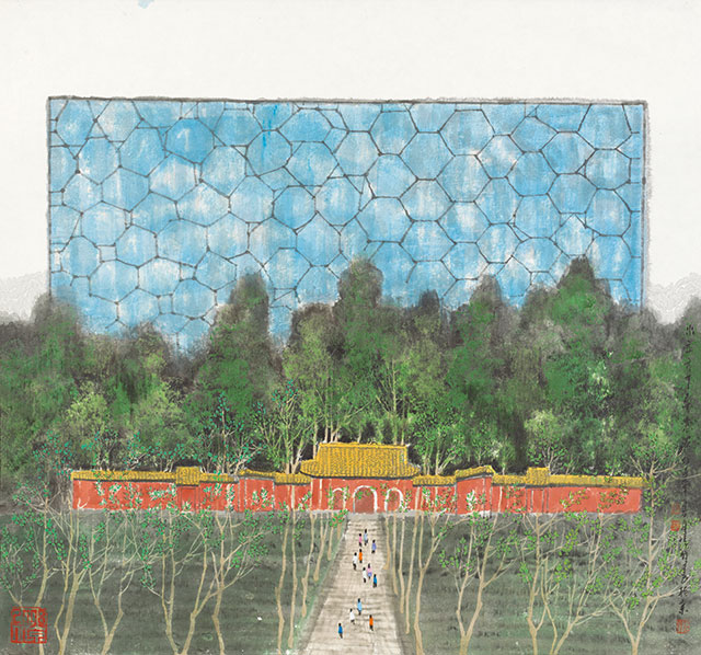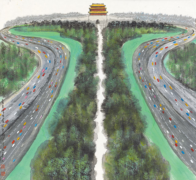 对故乡北京的念想始终是赵准旺艺术创作中的母题。从学画之初到旅美归来,他从未间断以画笔描绘北京。赵准旺流连于北京的街头巷尾,不知疲倦地写生,将对北京的眷恋与思念融入线条与色彩,用真诚与热爱讲述着一个多情而迷人的北京。本次展览集中展示赵准旺近40年来创作的以北京为主题的水墨画作品近100幅,其中既有皇宫园林、胡同四合院的深邃古韵,又有高楼新桥、城市地标的活力新景。这些作品展现出画家在平淡中见奇异的“慧眼”,在寻常中求意趣的“妙想”,饱含着画家对家乡、对时代的浓厚深情,浸润着“笔墨映时代、丹青绘真情”的艺术精神。