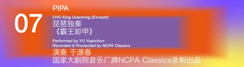 《霸王卸甲》,著名的古代琵琶大套武曲,全曲共分十六段。这段选曲以“楚歌”、“别姬”为中心。在“楚歌”中琵琶用长轮的手法奏出凄凉悲切、令人肝肠寸断的曲调。接着“别姬”则以急促的歌唱性的音乐和用推音奏出的滑音,和“楚歌”相呼应。《霸王卸甲》和《十面埋伏》同样都是取材于楚汉相争的垓下之战。不同的是,《十面埋伏》的主角是刘邦,而《霸王卸甲》的主角是项羽,表现出楚霸王这个“力拔山兮气盖世”的历史人物在四面楚歌中的无奈与感慨,从而诀别虞姬,意欲自刎的悲壮。