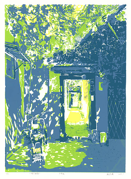 梁嘉琪 《胡同绿荫》 丝网版画 62x45cm 2024年