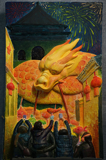 张振钰 《胡同里面过大年》 石膏着色 65x40x10cm 2024年
