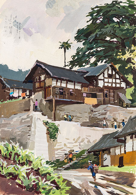 《遵义新桥》 沈尧伊 1975年6月13日 27X39cm