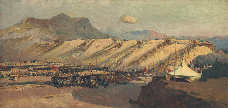 王式廓 《十三陵水库工地之三》 60×120cm 布面油彩 1958年 中央美术学院美术馆藏