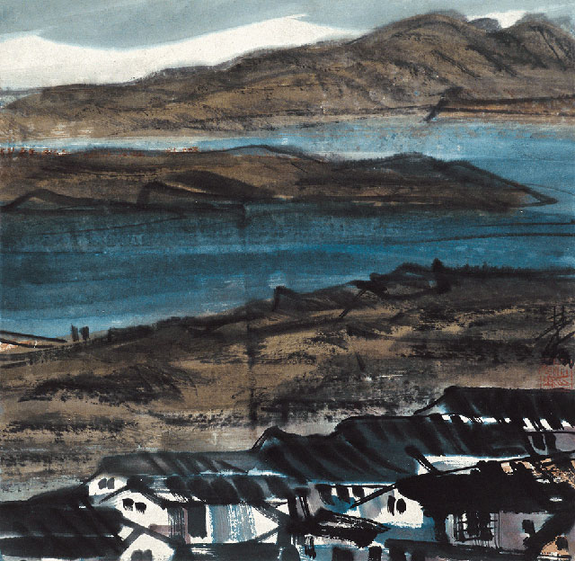 林风眠 《沿江村落》 37×41cm 纸本设色 年代未署 中央美术学院美术馆藏