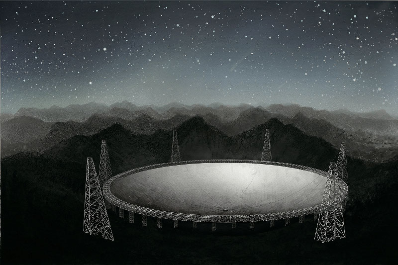 周吉荣 《中国天眼--贵州平塘射电望眼 》 80×100cm 丝网套色 2019年 中央美术学院美术馆藏