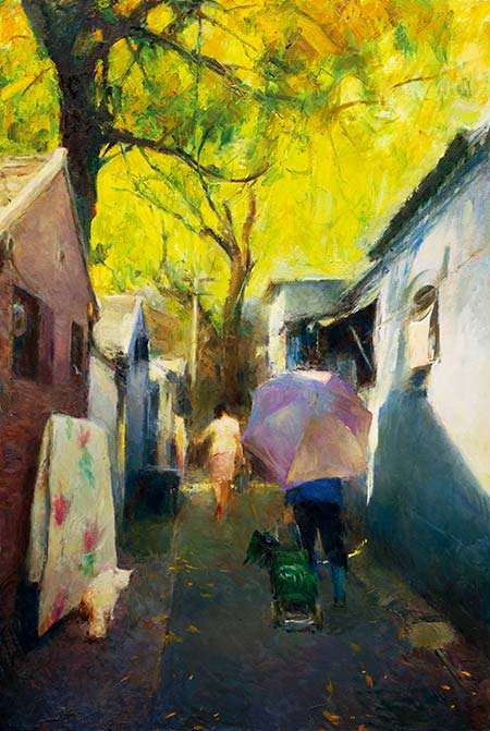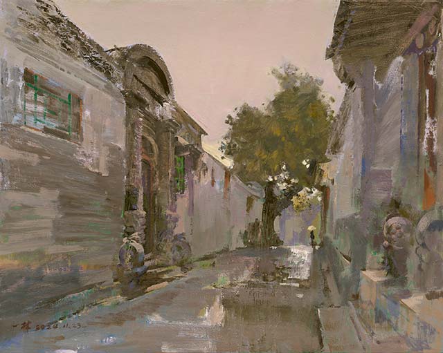 丁一林 《秋雨-豆腐池胡同》 布面油画 80×100cm 2024年