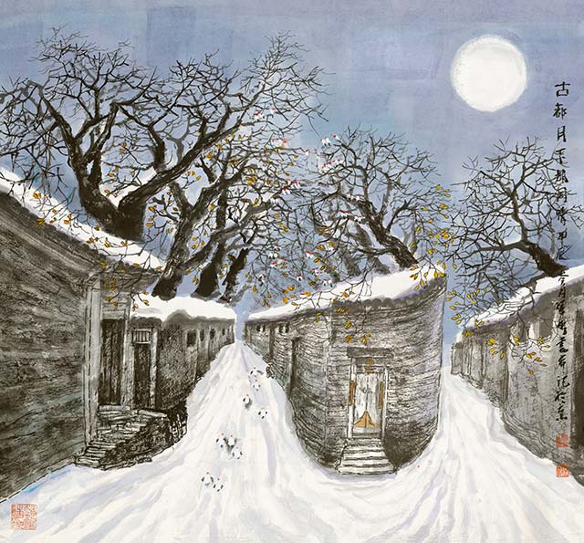 赵准旺 《古都月下胡同情》 96×96cm 纸本水墨 2024年