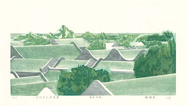 林楷龙 《屋顶自生涛浪势》 水印木刻 23.4x45cm 2024年