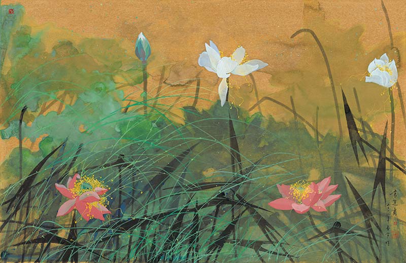 《金碧荷塘》,袁运甫,纸本设色,102×145cm,2012年