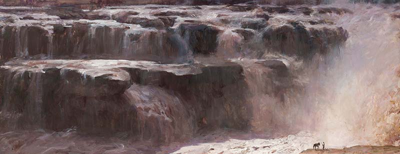 《黄河大瀑布》,靳之林,布面油画,100x260cm,2011年