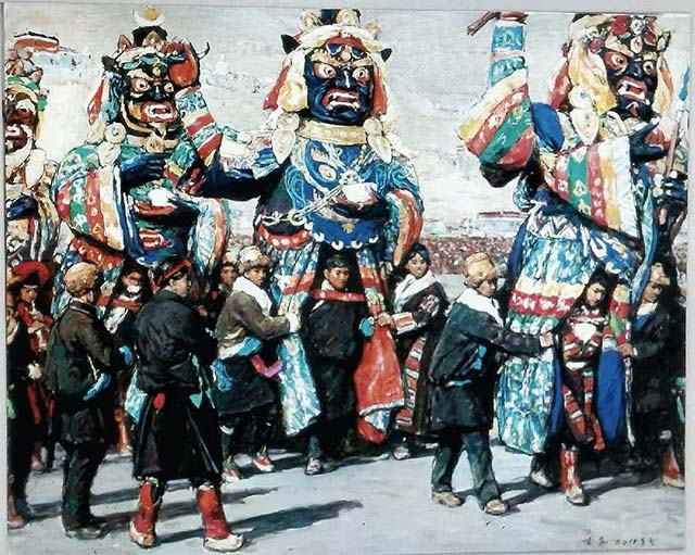 《蕯迦祈福》,潘世勋,130×65cm,2017年