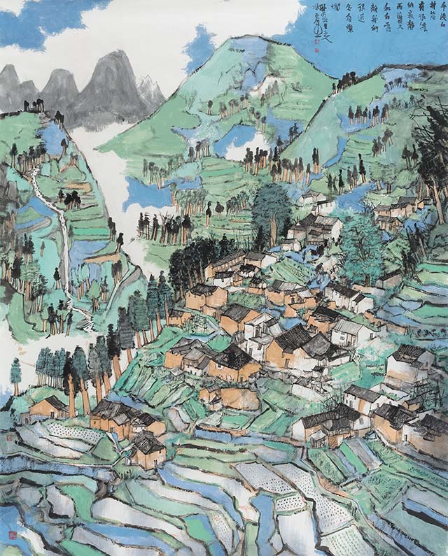 《午后的村庄》,林容生,纸本设色,200x160cm,2019年