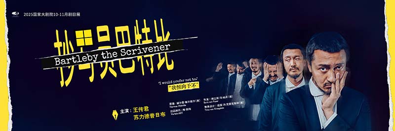 当一个人的行为不符合你所了解的游戏规则,你将如何与他相处?当你想破了头也搞不明白他这样做的原因,你会不会对自己的行为也开始产生困惑?1853年,美国作家赫尔曼·梅尔维尔在他的小说《抄写员巴特比:一个华尔街的故事》中便塑造了这样一组怪异又现实的人物关系。舞台上时间和空间交错,19世纪末,面临世纪交替的华尔街、20世纪30年代初,被誉为“东方华尔街”的上海以及今天的国际金融大都市,将在舞台上交织着共同存在。在简洁而独特的舞美和影像装置中,演员王传君以及苏力德将带着他们的叙述和表演与你相遇,展现一场人与环境的抗衡、人与人在尝试交流中错位。