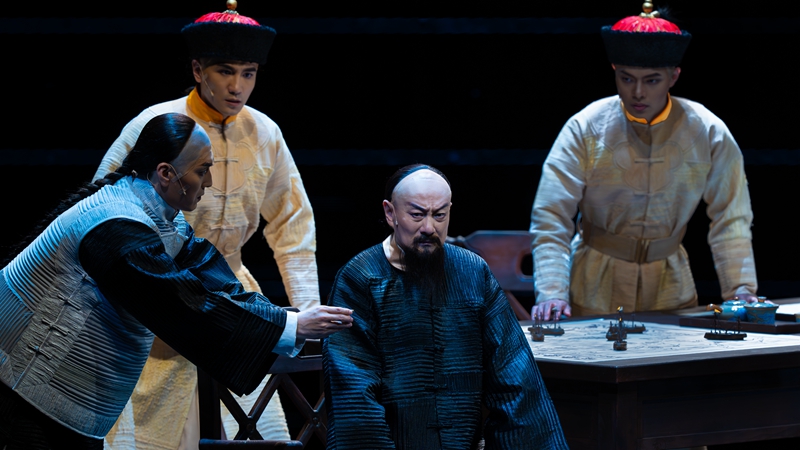As a minister of Beiyang, LI Hongzhang, acted by ZHANG Yechuan (right), chose to bear the misery and ordered the Beiyang Fleet to protect the battleships to subdue the enemy.