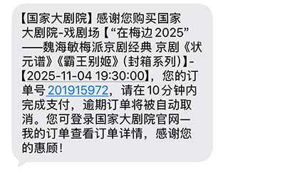 5、选定座位后,将收到手机短信通知。确定后请在订单锁座时限内完成支付。