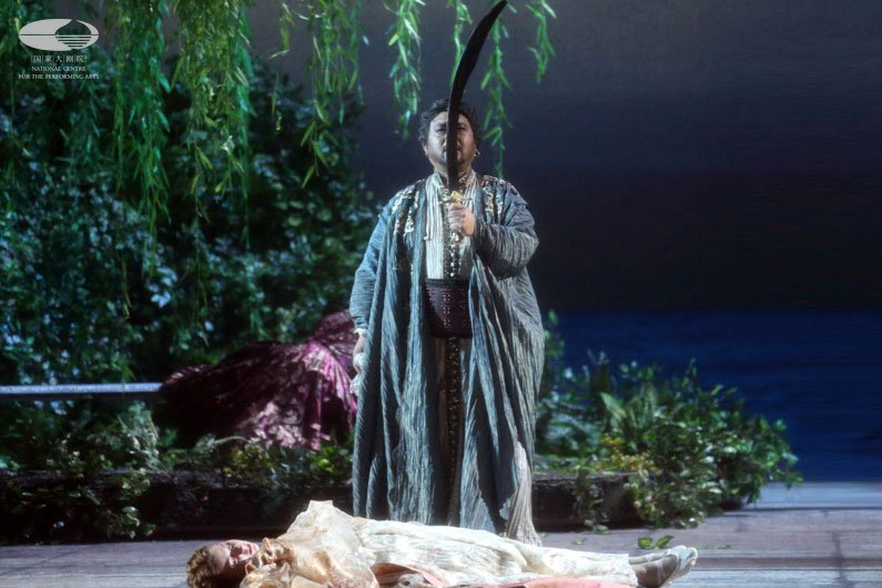 第四幕 奥赛罗(右 弗兰克·博雷塔饰)陷入圈套,深信妻子对自己不忠,直至丧失理性亲手杀死了无辜的苔丝黛蒙娜(左 张立萍饰) 王小京/摄
