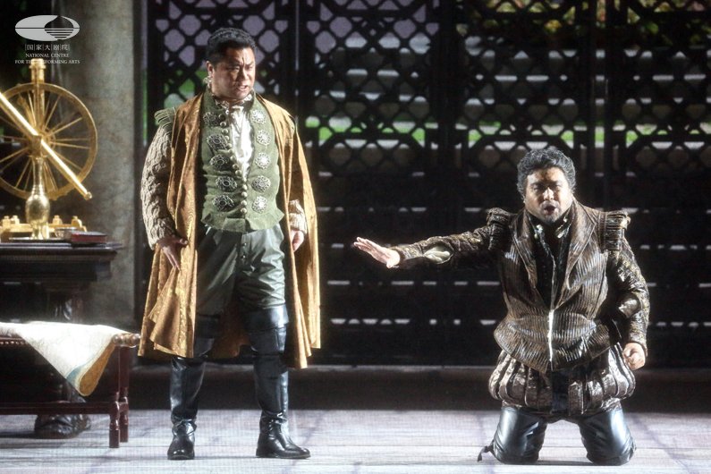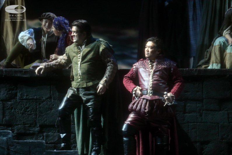 第一幕 奥赛罗任命卡西奥为副将,阴险的旗官亚戈(左 尼古拉·米加洛维奇饰)因没有得到提拔而心怀嫉妒,决意用奸计谋害奥赛罗 王小京/摄