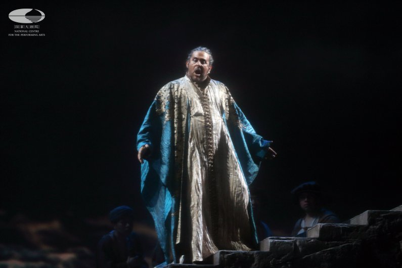 第一幕 在汹涌的雷雨风暴中,威尼斯舰队黑人司令奥赛罗(弗兰克·博雷塔饰)以胜利者的姿态率领舰队经土耳其返回塞浦路斯 王小京/摄