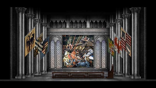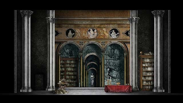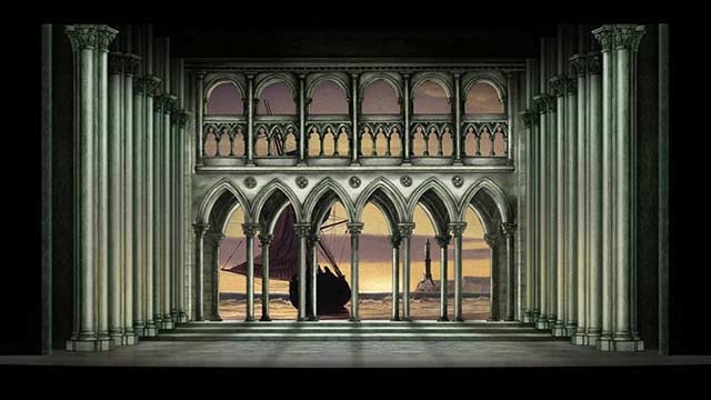 叛乱已经被平息,在执政官的宫殿内,此刻这对保持了25年关系纠葛的翁婿终于化干戈为玉帛,将仇恨演变成彼此的怜悯。以广板的速度,在弦乐深邃的三连音铺陈下,费耶斯科唱出了意味深长的曲调,并以自责的口吻宽恕了西蒙,而后者则在不断攀升的半音音阶下,唱出“你的宽恕将成为我心灵的慰藉”,成就了威尔第歌剧中鲜有的男性角色间的感人互动。