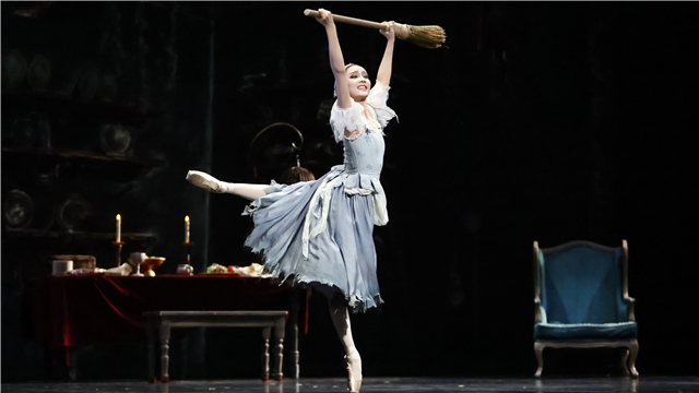 灰姑娘的继母、父亲和继姐妹正忙着筹备宫廷舞会。灰姑娘则被支使去打扫房间。她拿起扫帚,开始扫地,然后拿出妈妈生前的画像暗自神伤。灰姑娘的父亲回来后,看到这样的场景不禁懊悔不已。灰姑娘反过来安慰着父亲。这时姐姐们闯了进来,打断了父女二人的温馨时刻,夺走了妈妈的画像。