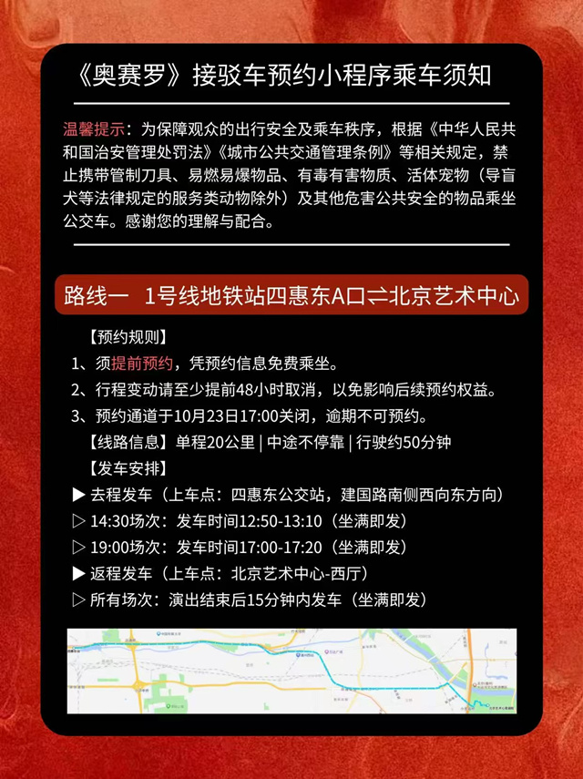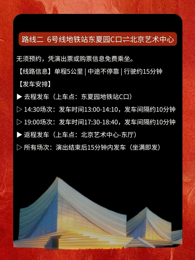 *本场演出观众可享受免费专属接驳车服务,路线及乘车方式如下:
