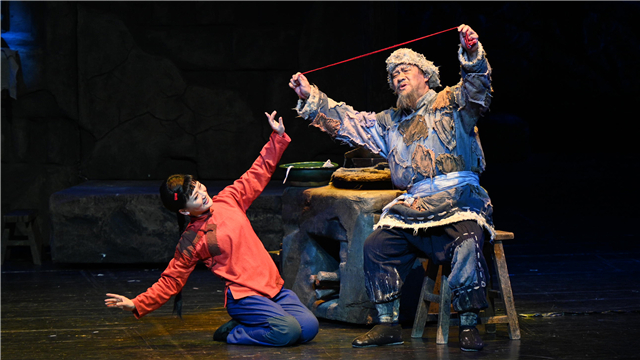 黄世仁婚事将近,为避“家丑”,黄家拟将喜儿卖给人贩子。张二婶得知后,帮助喜儿逃出黄家。大河边芦苇荡中,追逐而来的黄世仁、穆仁智发现岸边一只喜儿的鞋,判定喜儿投河而亡。喜儿躲过劫难,逃进深山。