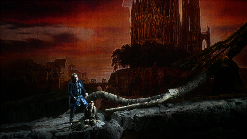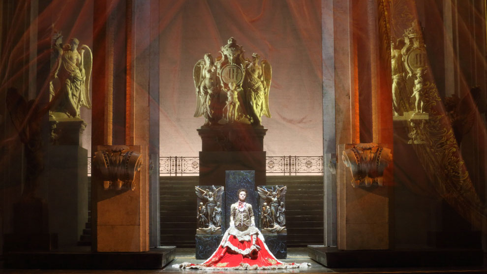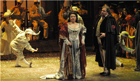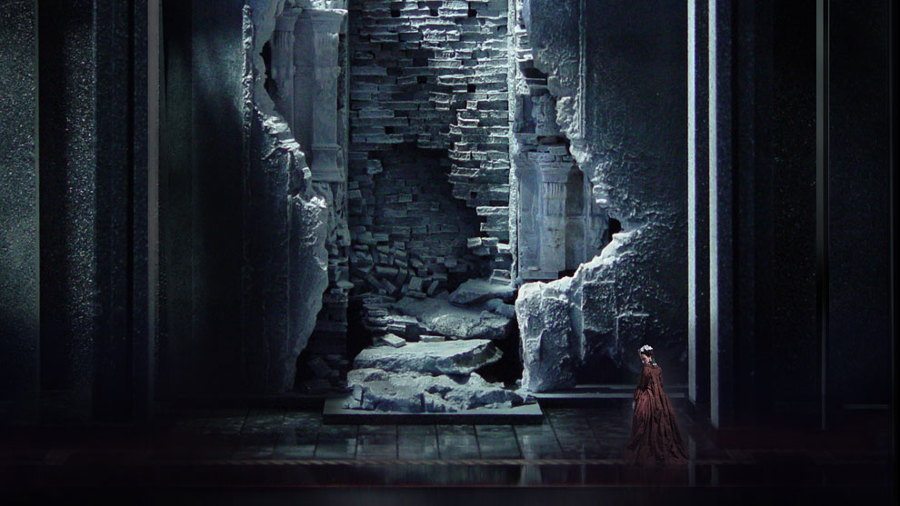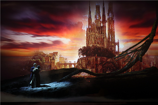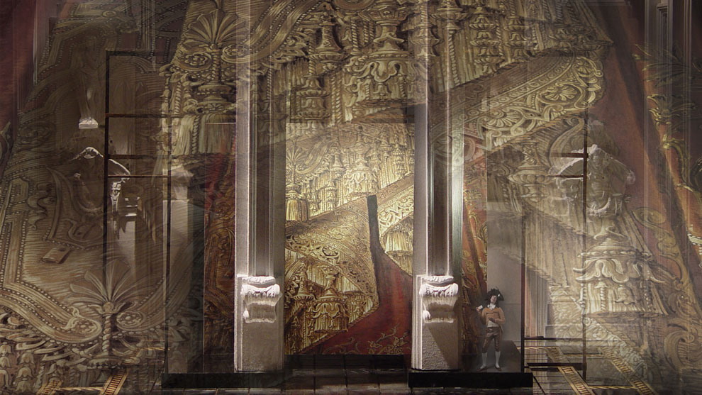 当我们要把这部作品搬上舞台进行表演的时候,我们必须了解这三点:一是历史实情,二是歌剧内容,三是向观众表达的部分。这部歌剧必须能够吸引观众的眼球。这部歌剧由许多矛盾冲突构成:激情、爱情、复仇、盛大的舞会、欢宴欢笑、占卜未来的水晶球与死亡,这一切的因素组成了一部鸿篇巨制,我相信能给观众带来的强烈冲击。另外,我希望得到素雅的效果,以黑白对比作为视觉冲击。我将会把我认为好的部分完全表现出来,我的工作是一个尝试,也冒着一定的风险,我通过各种途径寻得一些信息,希望能表现意大利传统的歌剧样式,但另一方面这也是一部极具个人色彩的作品。为了吸引观众,我将在剧中运用色彩,但这些色彩将与传统东方戏剧中的风格大相径庭。
