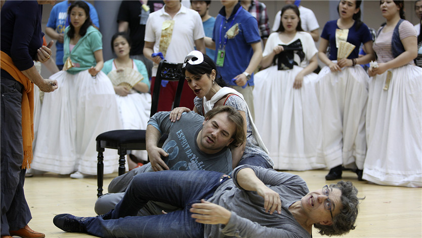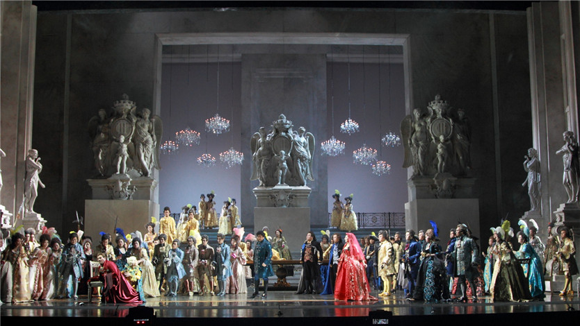在与中国观众的首次接触中,我选择了《假面舞会》。这是威尔第最与众不同的一部歌剧,我想对于中国人来说也是一样完全崭新的东西。我希望能以意大利歌剧的传统将其展示给中国观众。同时,从视觉上来说,也加入了很多新的元素,例如在装饰、服装、演员站位等方面。