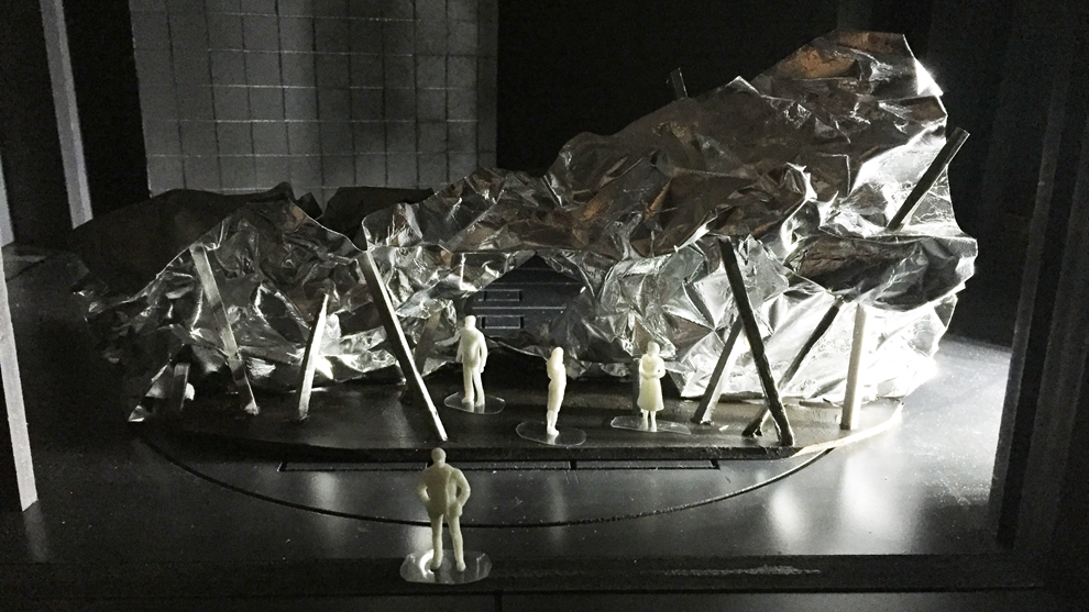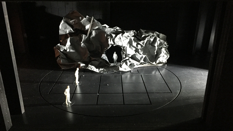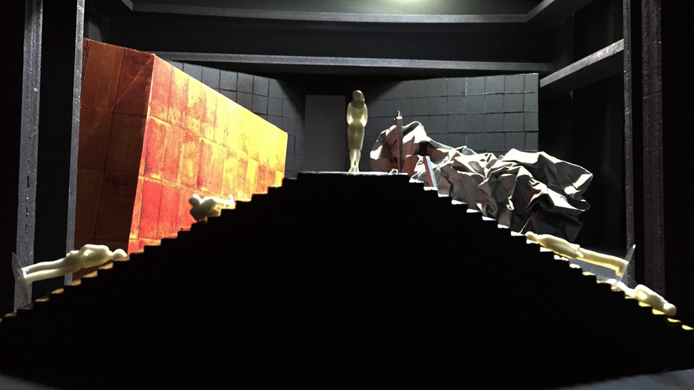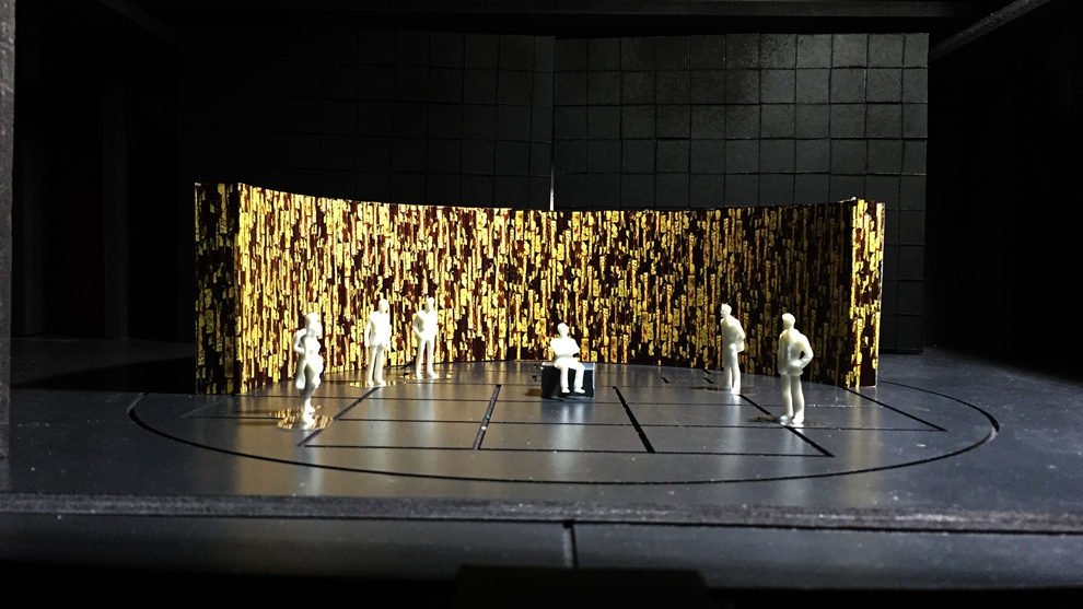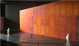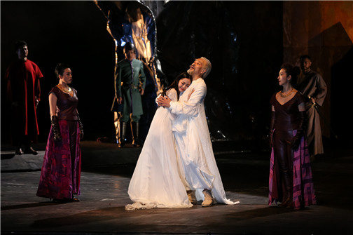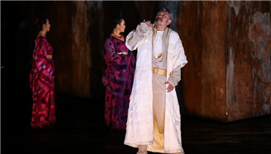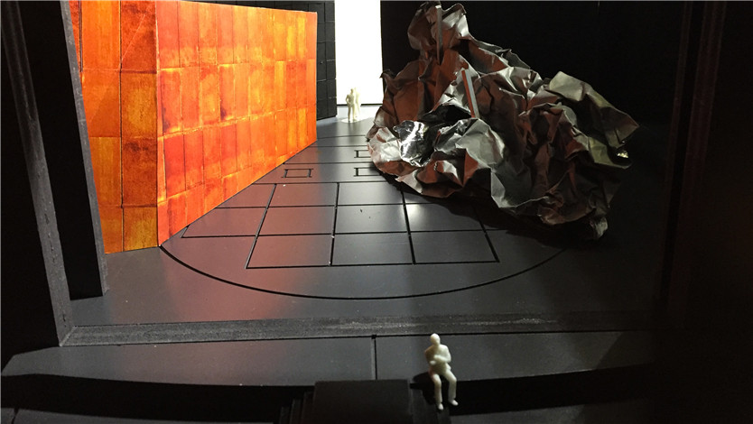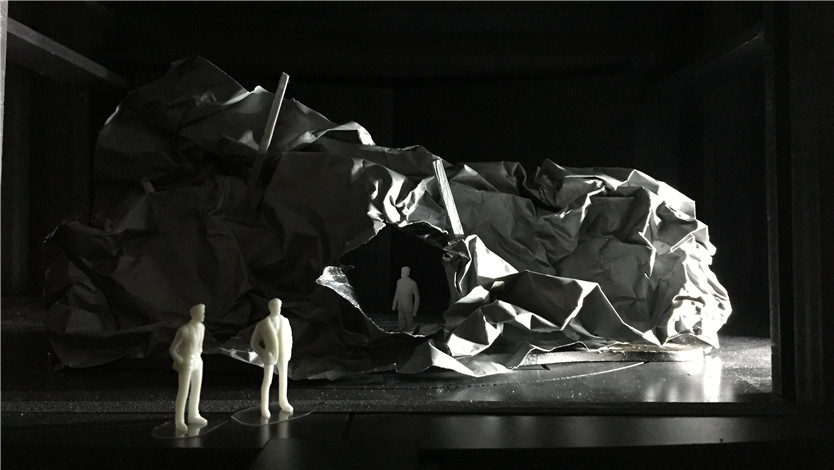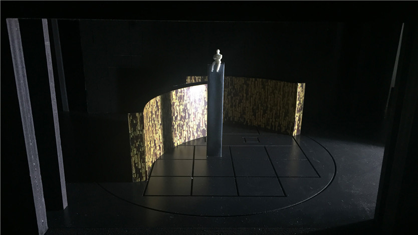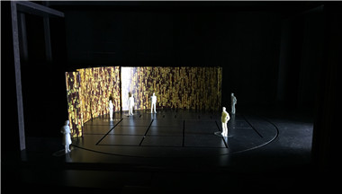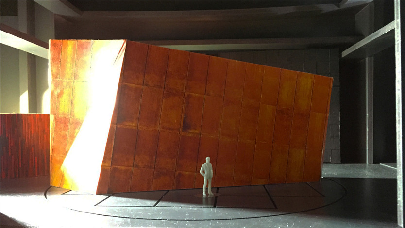 关于《李尔王》的舞台布景,我认为在二度创作中,应当尊重莎剧的经典性。我们在构思的时候就没有想过要去解构它,现在很多的莎剧舞台演绎都是从文学角度进行解构。我们是在尊重文学的前提下,用舞台表演来体现我们的艺术观点。另外,毕竟《李尔王》是四百年前的作品,它如何和当代产生联系,又怎样跟明天、未来的戏剧发展产生联系?这就关系到视觉上的呈现,视觉呈现又一定是和内容结合起来的,所以我们在舞台和造型设计上就需要有一种视觉印象,即从历史走进当代,让观众有一种从四百年前走到当下的感觉。实际上,《李尔王》也是一部历史剧,而这历史的长度是大于四百年的。李尔王的故事在莎翁写作之前就已经开始流传了,按我们现在的话来说就是正史、野史的记载都有,故事本身是远先于莎士比亚生活的时代,就像《赵氏孤儿》一样,已经流传了很久,它并没有明确的年代信息,但是历史的纵深慢慢通过服装、视觉、表演形态的变化走近我们,走到当代。