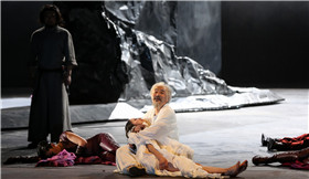 国家大剧院与北京李六乙戏剧工作室联合制作的话剧《李尔王》,是国家大剧院继《仲夏夜之梦》和《哈姆雷特》之后,于2017年上演的首部莎士比亚戏剧作品。为了致敬这位伟大的戏剧泰斗,国家大剧院特邀英国皇家莎士比亚剧团台词指导为演员进行台词训练,并选用其“莎剧舞台本翻译计划”中杨世彭先生的译本进行排演。著名导演李六乙在此译本基础上,结合排练实践进行演出本翻译修订,完成了文学语言向戏剧语言的转变,让莎士比亚从“象牙塔”走近观众。同时,德籍舞美设计米夏埃尔•西蒙与奥斯卡最佳服装设计得主和田惠美倾情加盟,完美呈现莎翁笔下的宫廷荒野与人物群像。