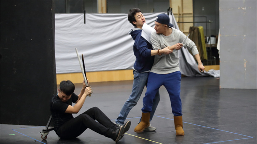 过去我们都认为莎士比亚高高在上,尤其是他诗化的语言,但实际上这些是不可演的,演员的台词需要让观众听懂。我们在过去对莎士比亚可能有些误区,认为他完全是诗化的剧作家,但他的语言实际上是非常朴实非常大众的,因为回到四百年前,他的剧在当时就是演给大众看的,我们却把莎士比亚神化了,把他推到了塔尖上。诗性的语言很重要,但是莎士比亚那种大众化的、能听懂的语言也需要被大家知道,因此我们需要回到莎士比亚本身。我曾两次去英国皇家莎士比亚剧团,看他们排练,与莎剧专家一起工作,分析文字中的线索。这让我明白了莎士比亚回到老百姓当中去的重要性。如何把诗化的台词变得通俗化,同时保留它自身的韵律,并适于舞台表演,这是我们进行重新翻译的初衷。莎士比亚的语言通俗不失哲思,这是他的高明之处。重新认识莎士比亚,是这版《李尔王》的亮点之一。如何从文学语言怎么回归戏剧语言?戏剧语言中包含着戏剧的动作性、戏剧冲突和人物的鲜明性。过去的莎剧中译语言中有很多的束缚,其实和真正的莎士比亚语言距离很远。怎么将老百姓的话说出艺术性、哲学性,莎士比亚的语言是一个最好的范本。