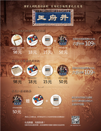 购《王府井》百场纪念海报50元,送2015原创剧目明信片、《王府井》节目册