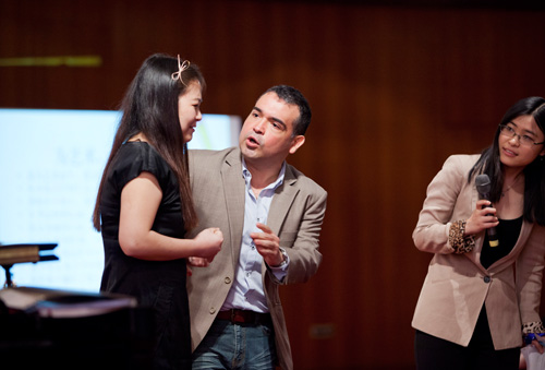 在周日的“国家大剧院经典艺术讲堂”中,曼查多兴致勃勃的当起了老师,亲自指导两位来自中央音乐学院研究生班的同学进行试唱。两位同学分别带来了歌剧《托斯卡》中卡瓦拉多西著名的咏叹调“奇妙的和谐”以及托斯卡的咏叹调“为艺术,为爱情”。曼查多在讲解中反复强调:“在饰演角色中,即便每一个音符都是对的,也不应抛开角色。”国家大剧院艺术教育部相关人员告诉记者:“曼查多先生不仅是一个成功的歌唱家,在声乐指导上也很有一套,他的现场指导让我们印象深刻,中央音乐学院的学生也觉得受益匪浅,他真的很棒。”文化评论人周黎明对曼查多有着高度的评价:“曼查多有着拉丁人骨子里火一样的激情,他对饰演的所有角色都非常用心和投入,这会给东方性格相对比较内敛的声乐学生有很多启发。”
