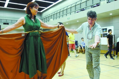 前天,媒体探班时,中外演员与大剧院合唱团共同展示《弄臣》第一幕。
