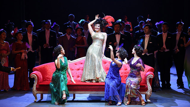 大幕拉开,随着管弦乐团一连串和弦奏出,恢弘的序曲《夯歌》唱响。紧随其后的陈白露唱段《你是谁》乐风突转,感人肺腑的歌唱旋律融合在乐团奏出的温润音色中,令人仿佛瞬间坠入了色彩斑斓的梦幻仙境。李石清出场的宣叙调,运用了泛调性、点描式的音乐作为伴奏,极难演奏。剧中陈白露、诗人和小东西的三重唱《我想有个家》优美动听,民谣的旋律在三个人演唱中穿梭,给观众留下了极为深刻的印象。第二幕开场那些风尘女子与黑道保镖的合唱《妓女/黑三之歌》也是有着城市民谣的韵味,诙谐幽默。陈白露最后一段咏叹调《诀别》,花腔与戏剧性并存,给了歌唱家不小的难度,而剧中每个人物更是都被金湘用音乐设计得性格迥异有声有色,这在当今原创歌剧中是不太容易的。面对如此绚丽多彩的音乐风格,在指挥吕嘉的带领下,国家大剧院管弦乐团经过数月“攻坚”,出色地完成了交响的演奏。