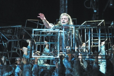 (记者 韩轩)大幕启,数十个不锈钢制成的正方体道具分三排整齐排列在舞台之上。音乐声起,在一群被奴役的“希伯来人”的呼唤声中,世界著名男高音何塞·库拉迈着沉重的步子登上舞台。昨天,由国家大剧院、都灵皇家歌剧院联合制作的圣-桑歌剧《参孙与达丽拉》在国家大剧院首演,何塞·库拉动人的嗓音与充满金属质感的舞台制作给观众带来强烈的视听体验。