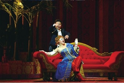 另外,“当初的我很傻很天真”、“一看就是年轻有为的富贵人家第二代”、“早年参军,转业到了维也纳,家乡话忘光了”、“hold住,hold住”、“正点”、“淡定”、“数字没意义,神马都是浮云啊”等网络语言,也呈现在了歌剧舞台上,有着独特的笑点。