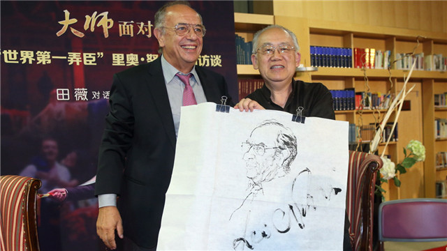 努奇大师在剧迷为其创作的画像上签名 王小京/摄