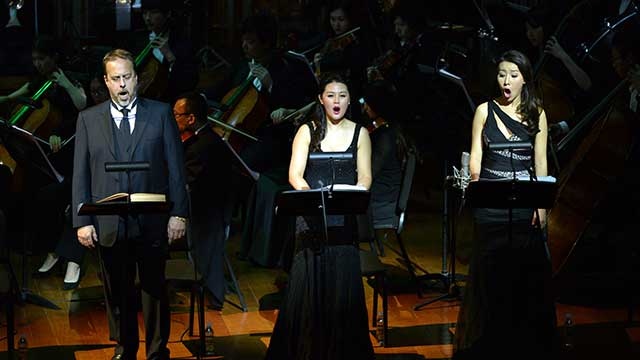 一曲时而清新恬静、时而狂啸激烈的序曲,拉开了当晚音乐会版《威廉·退尔》的序幕,其中充满英武气概的进行曲更是激发起了观众的热情,获得了雷鸣般的掌声。这部拥有著名序曲的罗西尼歌剧杰作,改编自德国诗人、剧作家席勒的同名戏剧。用宏大的史诗结构、宽广的旋律、丰富的和声,描绘出13世纪瑞士人民抗击暴政、争取独立的史诗画卷。特别是,作曲家为威廉·退尔与阿诺尔德两个角色写下极有难度的唱段,对歌唱家充满挑战。此次加盟音乐会版《威廉·退尔》的男中音歌唱家乔瓦尼·梅欧尼,在当晚的音乐会上,用饱满扎实的嗓音,既塑造出神射手的英勇刚毅,又在射中儿子头顶苹果时的咏叹中,展露勇士内心深处温柔的慈父情怀。阿诺尔德饰演者马里奥·泽菲里音色明朗透亮,唱起憧憬爱的咏叹,华美动人。而与泽菲里有爱情对手戏的旅奥女高音歌唱家宋元明,表现也十分抢眼,其既有张力又极富抒情性的嗓音,表现出爱情的纠结及对正义的向往。饰演罗迪的石倚洁唱起的渔夫咏叹,在竖琴的映衬下,优美闲适。