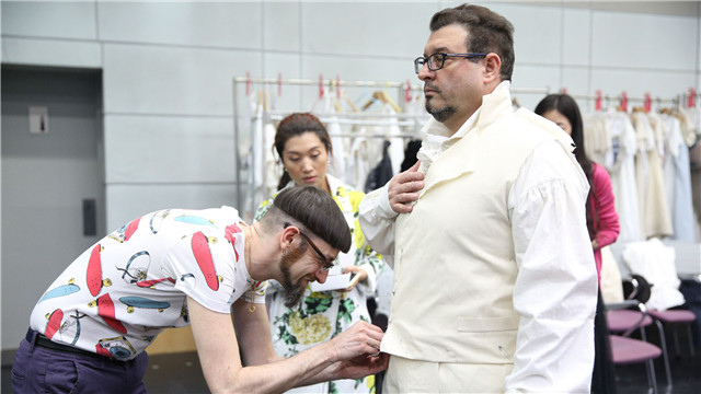 国家大剧院、英国皇家歌剧院、旧金山歌剧院联合制作歌剧《安德烈·谢尼埃》的服装试装与修改工作正在紧锣密鼓地进行。这一版本《安德烈·谢尼埃》的服装由来自英国的欧洲服装史专家、服装设计师詹妮·蒂拉曼尼设计。詹妮·蒂拉曼尼本着真实还原的原则,在舞台上重现了法国大革命时期社会各阶层人物的服饰。5月13日,大剧院《安德烈·谢尼埃》古董服装秀,欧洲服装史专家、《安德烈·谢尼埃》服装设计助理卢卡·考斯蒂里奥罗与媒体分享设计师创作理念,并通过对剧中安德烈·谢尼埃、玛达莱娜、伯爵夫人、平民、贵族、密探等人物服装的展示,直观呈现了设计师在设计与制作过程中对于历史服饰的准确还原。